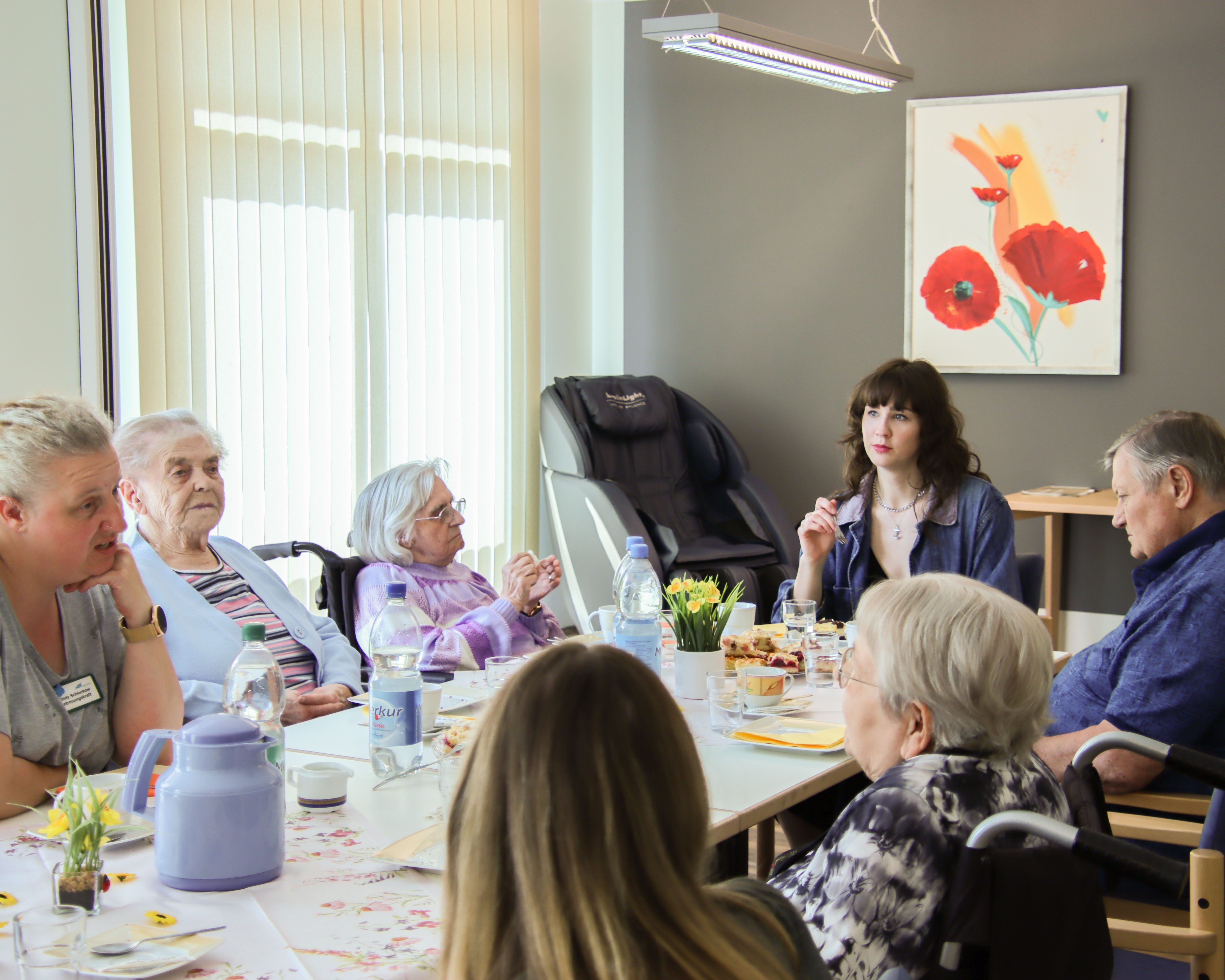 Am 31. Mai 2024 besuchte die Kandidatin zur Europawahl, Viviane Triems, unsere Altenhilfeeinrichtung Albert-Schweitzer-Haus in Teltow. Bei Kaffee und Kuchen tauschten sich Mitarbeitende sowie Bewohnerinnen und Bewohner über aktuelle gesellschaftliche Themen und Herausforderungen aus. Anschließend gab es eine Führung durch die Einrichtung.