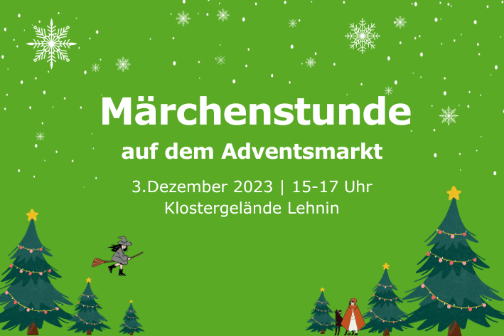 Am 3. Dezember 2023 verwandelt sich das Klostergelände Lehnin in den traditionellen Lehniner Adventsmarkt. Es gibt Leckereien, den Weihnachtsmann mit seinen Engeln, eine Wunschzettelabgabe, weihnachtliche Kleinigkeiten und in unserem Hospiz eine Märchenstunde. Von 15.00 – 17.00 Uhr werden im gemütlich hergerichteten Wohnzimmer im Erdgeschoss in heimeliger Atmosphäre Märchen vorgelesen. Und wer weiß, vielleicht fallen auch ein paar Schneeflocken vor dem Fenster…