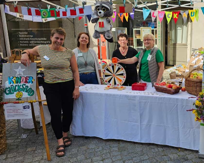 Unser Evangelisches Hospiz Luckau war zum 4. Mal mit einem eigenen Stand vertreten. Hauptattraktion war das Kinderglücksrad, wo die Kleinen viele tollen Preisen und Gutscheinen für Ausflüge in der Region gewinnen konnten. Das Glücksrad stand nicht still, so wurden nach 4 Stunden 250 Preise, 100 Gutscheine und 10 kg Äpfel an glückliche Kinder weitergegeben. Ein anderes Highlight war der kleine Tattoo-Stand, wo sich die Kinder und auch Eltern ein Tattoo ihrer Wahl aussuchen durften, natürlich abwaschbar.