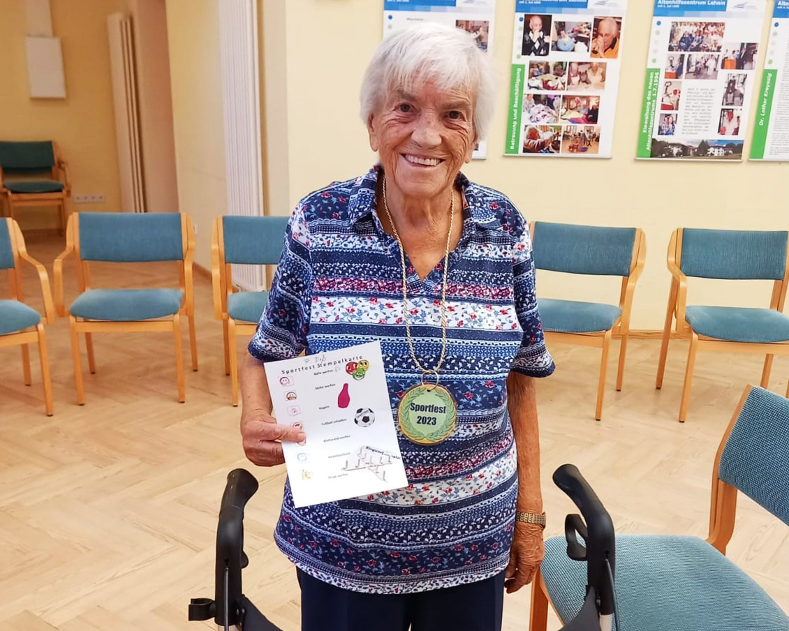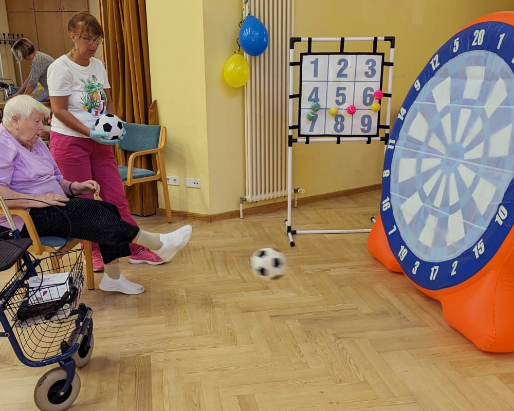 Am Freitag, den 15. September 2023, zeigten sich die Bewohnerinnen und Bewohner aus dem Lothar-Kreyssig-Haus in Lehnin sportlich und aktiv. Im Mittelpunkt stand aber nicht die sportliche Leistung, sondern mitmachen und vor allem Spaß haben. Die Teilnehmenden konnten an vielen verschiedenen Stationen ihr Geschick unter Beweis stellen. Es gab eine Fußballtorwand, Tischtennisball-Zielwerfen, eine Kegelbahn, Ringe werfen und sogar Tisch-Basketball. Erstaunlich, was die Bewohnerinnen und Bewohner noch alles können. Eine Bewohnerin, die einen Tag zuvor ihren 106. Geburtstag feierte, war mit am Start und hatte sehr viel Freude. Auch alle anderen Teilnehmenden waren begeistert und genossen dieses abwechslungsreiche Ereignis.
