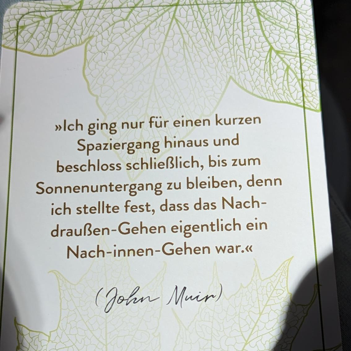 Am Ziel angekommen haben wir den Tag mit Kaffee, Gemüsesticks und einem Rest Kuchen ausklingen lassen. Dabei haben wir uns über unsere Erlebnisse und Eindrücke ausgetauscht. Alle waren sehr zufrieden und glücklich mit der Wanderung. Einige sagten, dass sie sich entspannter und frischer fühlten. Andere erinnerten sich an schöne Momente aus ihrer Kindheit oder Jugend. Wieder andere sagten, dass sie es genossen haben, mal zur Ruhe zu kommen und innezuhalten, wobei es dem einen oder anderen auch schwerfiel, in die Ruhe zu kommen, langsam und mit Bedacht zu gehen oder auch mal für eine Zeit lang zu schweigen. Es ist eben noch kein Meister vom Himmel gefallen.