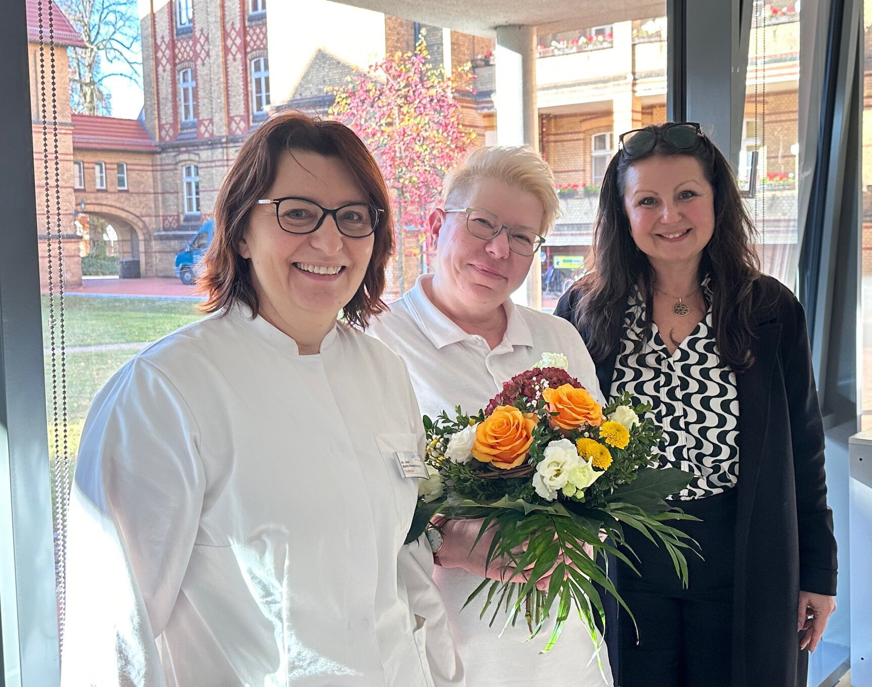 Die Klinikleitung, vertreten durch die Chefärztin Frau Dr. Niewiadomska und der kaufmännischen Direktorin, Frau Pajer, überraschten Frau Govorunova und gratulierten Ihr ganz herzlich zu Ihrem erfolgreichen Abschluss.