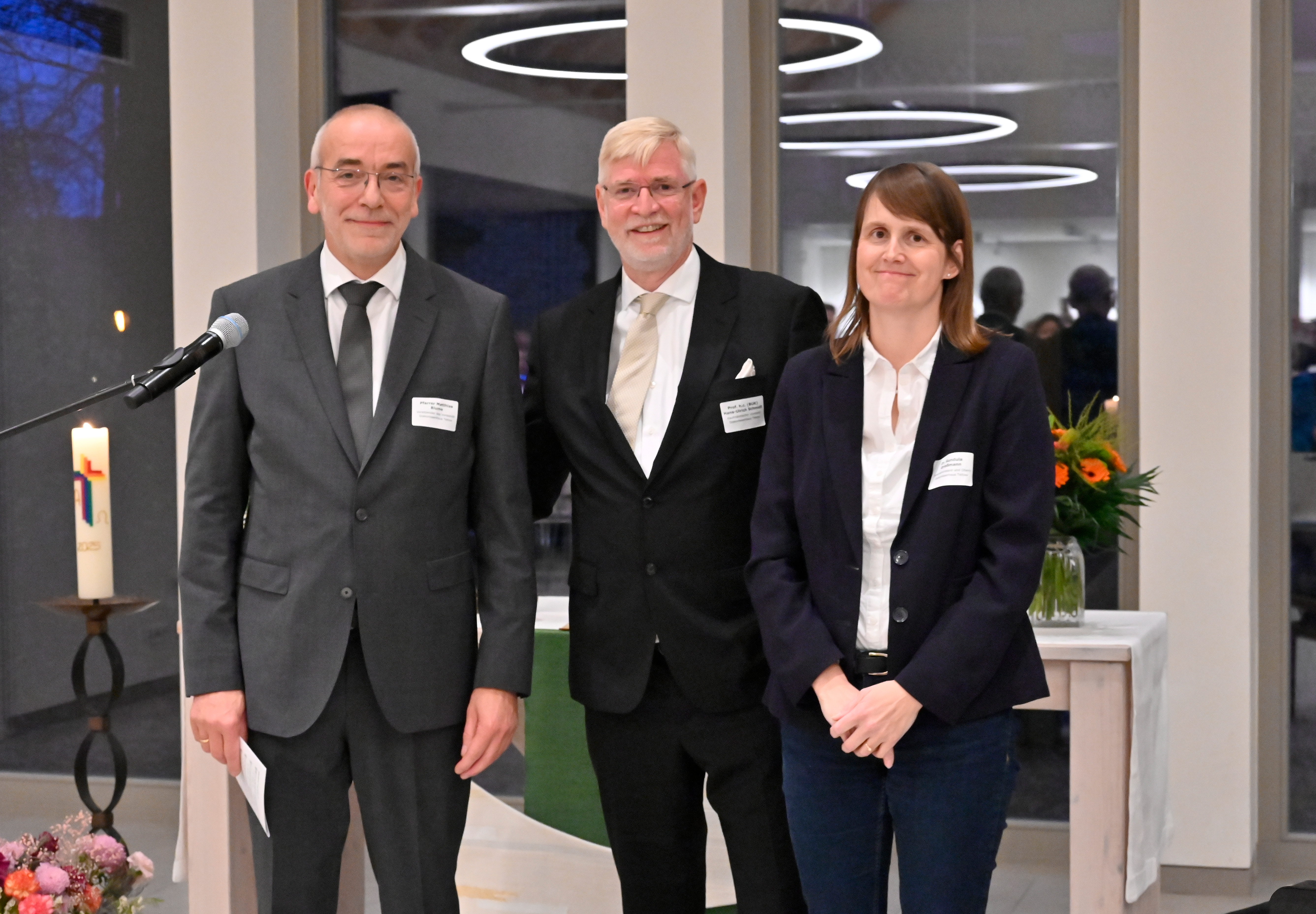 Nach der Begrüßung durch den Vorsitzenden des Kuratorium Jürgen Waldheim - von dem das oben stehende Zitat stammt- gestalteten unser Theologischer Vorstand Matthias Blume und Dr. Johannes Krug, Superintendent des Evangelischen Kirchenkreises Teltow-Zehlendorf und Mitglied des Kuratoriums, Andacht und Einführung. Herr Dr. Krug würdigte Herrn Prof. Schmidt als einen Menschen, der seine Gaben als Aufgaben versteht.