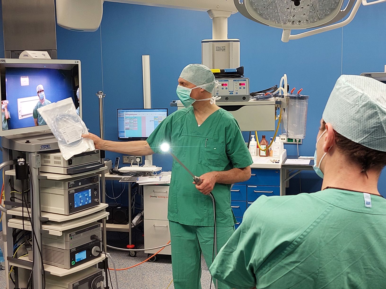 Seit letzter Woche werden minimalinvasive Eingriffe mit dem neuen Gerät umgesetzt welches bei Operationen im Magen-Darm-Bereich einige Vorzüge bietet. So kann durch eine spezielle Kamera inklusive Software Tumor-Gewebe optisch andersfarbig auf dem Monitor dargestellt werden und damit genauer entfernt werden. Weiterhin hat das neue Gerät eine 3D-Funktion und damit realistischere Darstellung auf dem Monitor. Während der Operation werden zusätzlich entstehende Rauchgase durch einen flexiblen Schlauch abgesaugt.