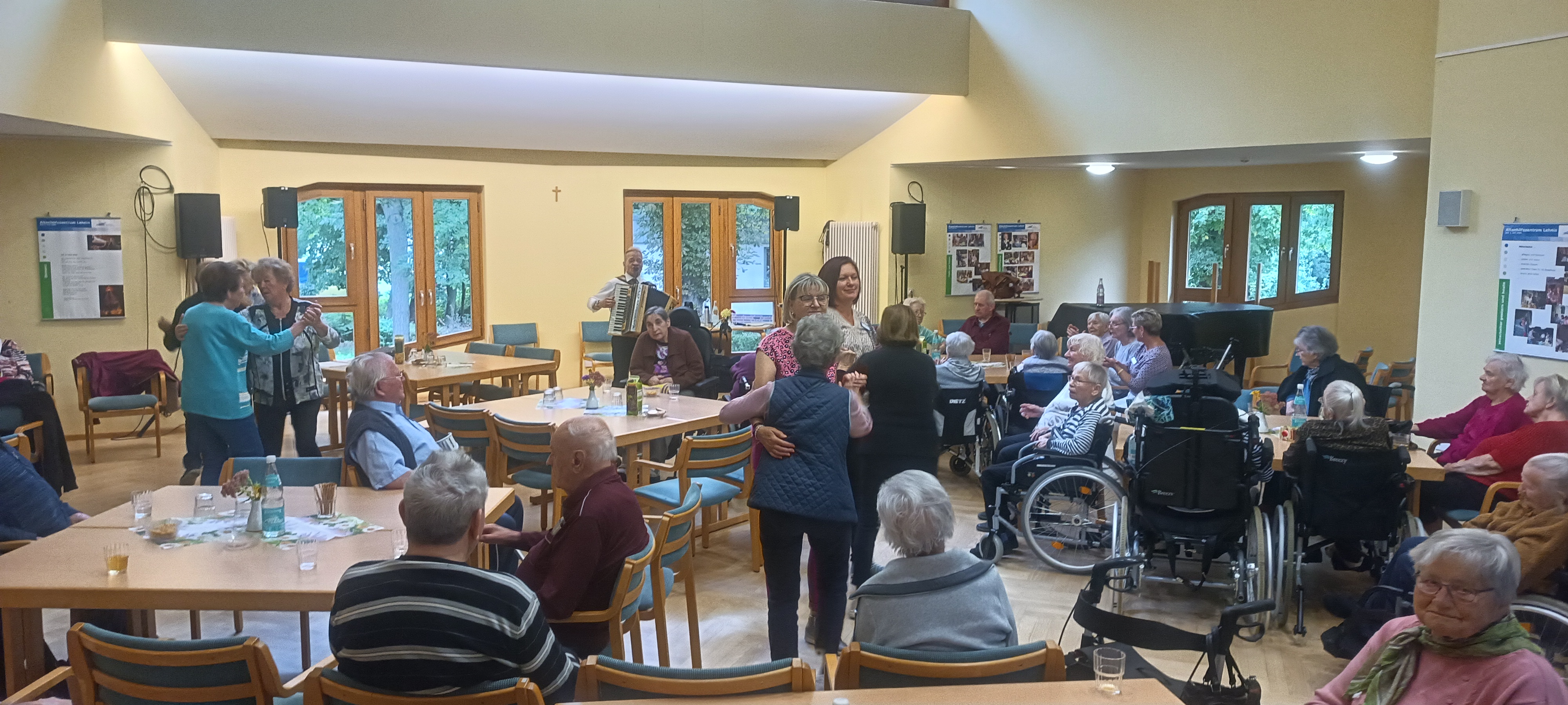 Am Welt-Alzheimer-Tag am 18.09.2025 feierten die Gäste der gerontopsychiatrischen Tagesstätte Lehnin gemeinsam mit den Bewohnerinnen und Bewohnern des Lothar-Keyssig-Haus Lehnin ein fröhliches Fest. Musiker Herr von Hasselbach sorgte mit seiner Musik für beste Stimmung – es wurde getanzt, gesungen und geschunkelt.