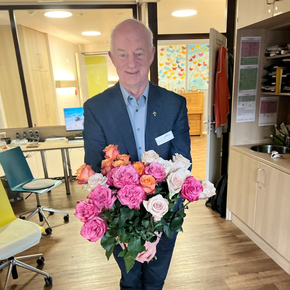 Traditionell überreichte Seelsorger Johannes Lorenz jeder Mitarbeiterin eine Rose, um seine Wertschätzung auszudrücken.