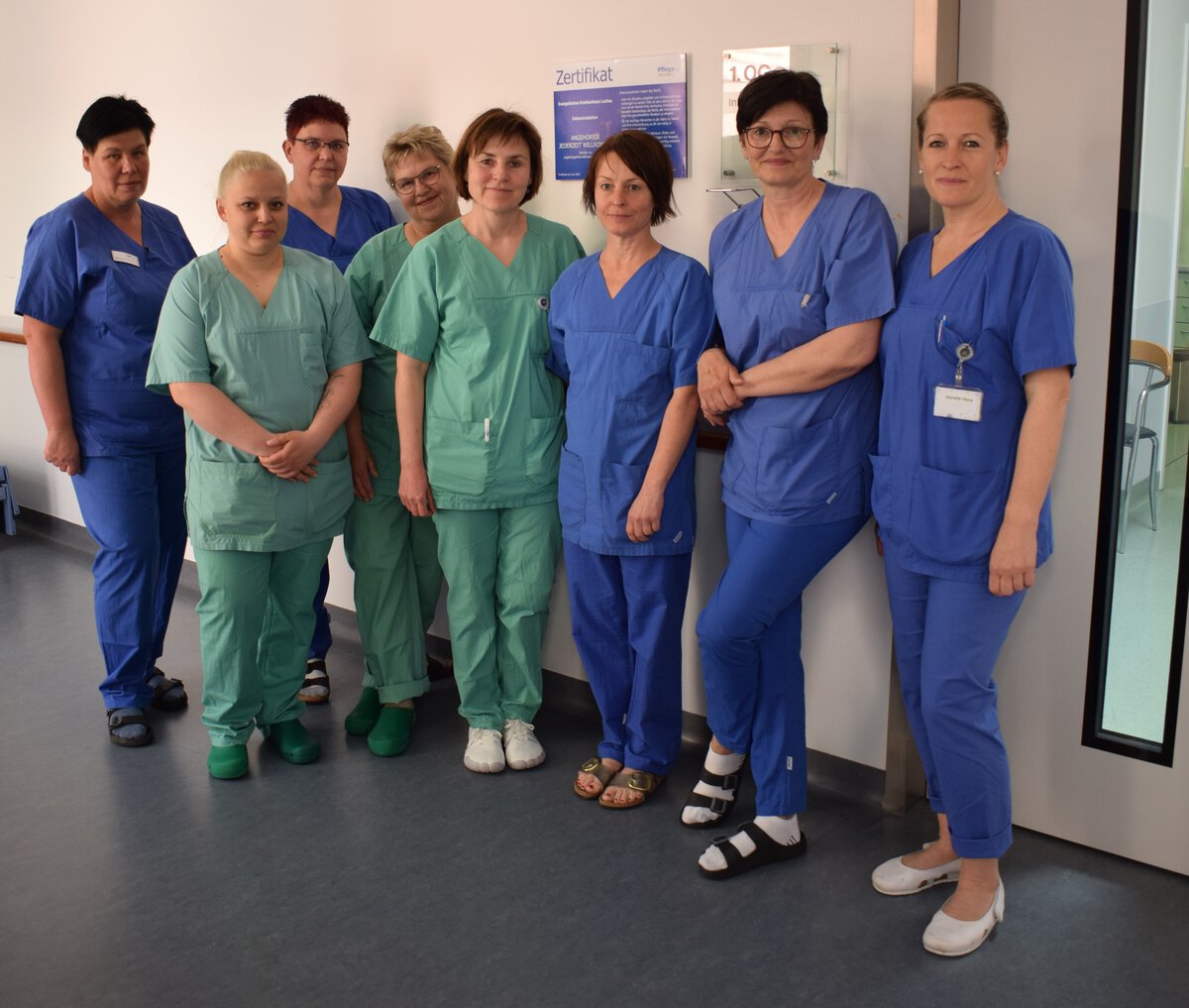 Das Team der Pflegekräfte der Abteilung unter der Leitung von Kerstin Zogbaum besteht aus 18 Mitarbeitenden, darunter acht Fachschwestern für Anästhesie und Intensivmedizin. Unser interdisziplinär ausgebildetes Pflegeteam versorgt die Patienten in der Anästhesie, auf der Intensivstation und im Aufwachraum.