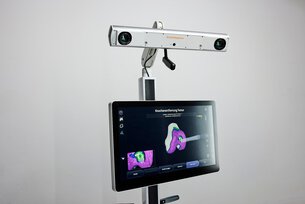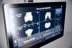 Während der Operation erstellt das System ein dreidimensionales Modell des Kniegelenks auf Basis der individuellen Anatomie. So kann der Operationsplan exakt auf die jeweilige Patientin oder den jeweiligen Patienten abgestimmt werden.