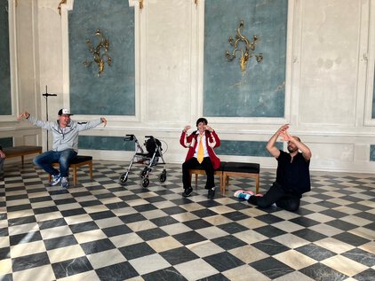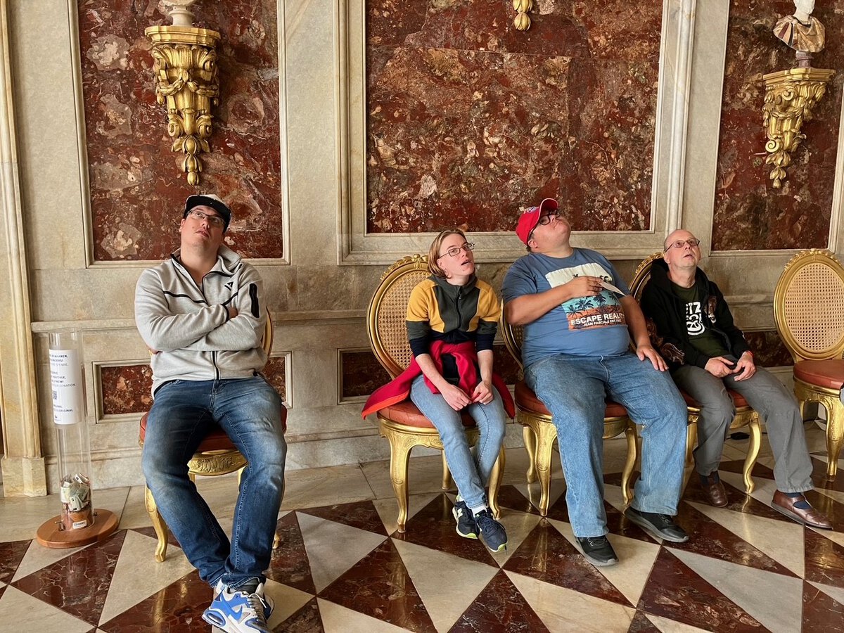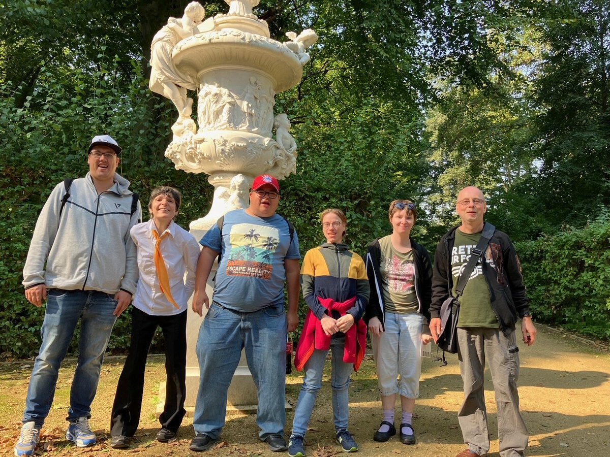 Das Foto ist von der Stiftung Preußische Schlösser und Gärten. Die Stiftung Preußische Schlösser und Gärten umfasst zahlreiche historische Schlösser und Parks in Potsdam und Umgebung. Um Besucherinnen und Besucher mit unterschiedlichen Bedarfen anzusprechen, bietet die Stiftung Informationen und Führungen auch in Leichter Sprache an.