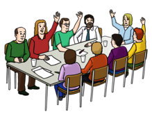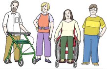 Eine Prüf-Gruppe aus Menschen mit Lern-Schwierigkeiten.