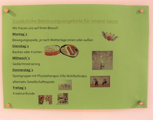 In der Zeit von 8.00 bis 16.00 Uhr bieten wir während der Woche ein abwechslungsreiches Programm für unsere Gäste an. Dazu zählen:
