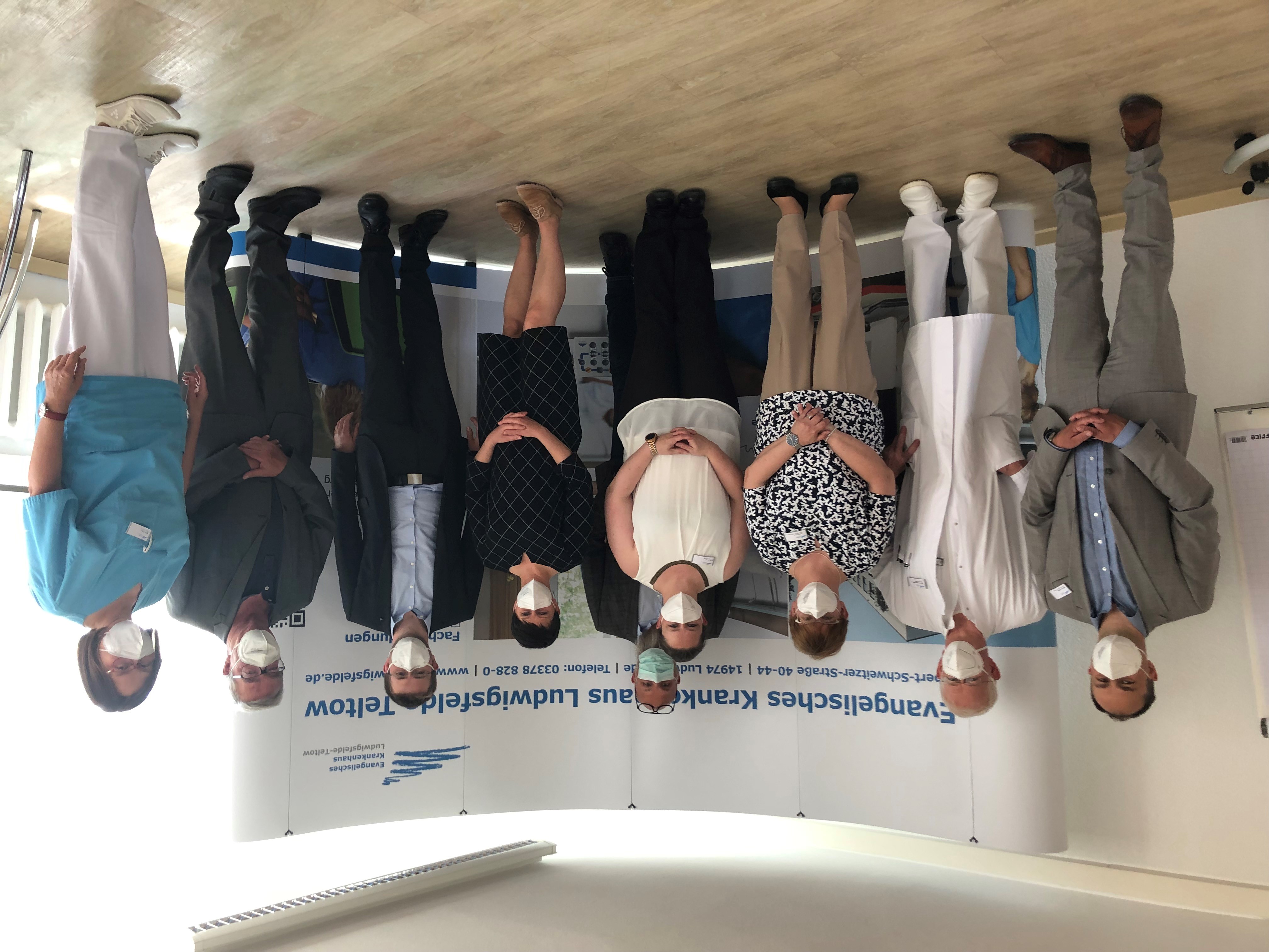 Foto: v.l.n.r. Martin Stelzer (Kaufmännischer Direktor Evangelisches Krankenhaus Ludwigsfelde-Teltow), Dr. Burkhard Schult (Ärztlicher Direktor), Doris Wilde (Qualitätsbeauftragte), Judith Emich (Qualitätsbeauftragte), Tobias Bruckhaus (Geschäftsführer Unternehmensbereich Gesundheit), Marlies Engel (Auditorin), Andreas Fischer (Auditor), Prof. Dr. Peter Hermanek (Auditor), Sylvia Unger (Pflegedirektorin)