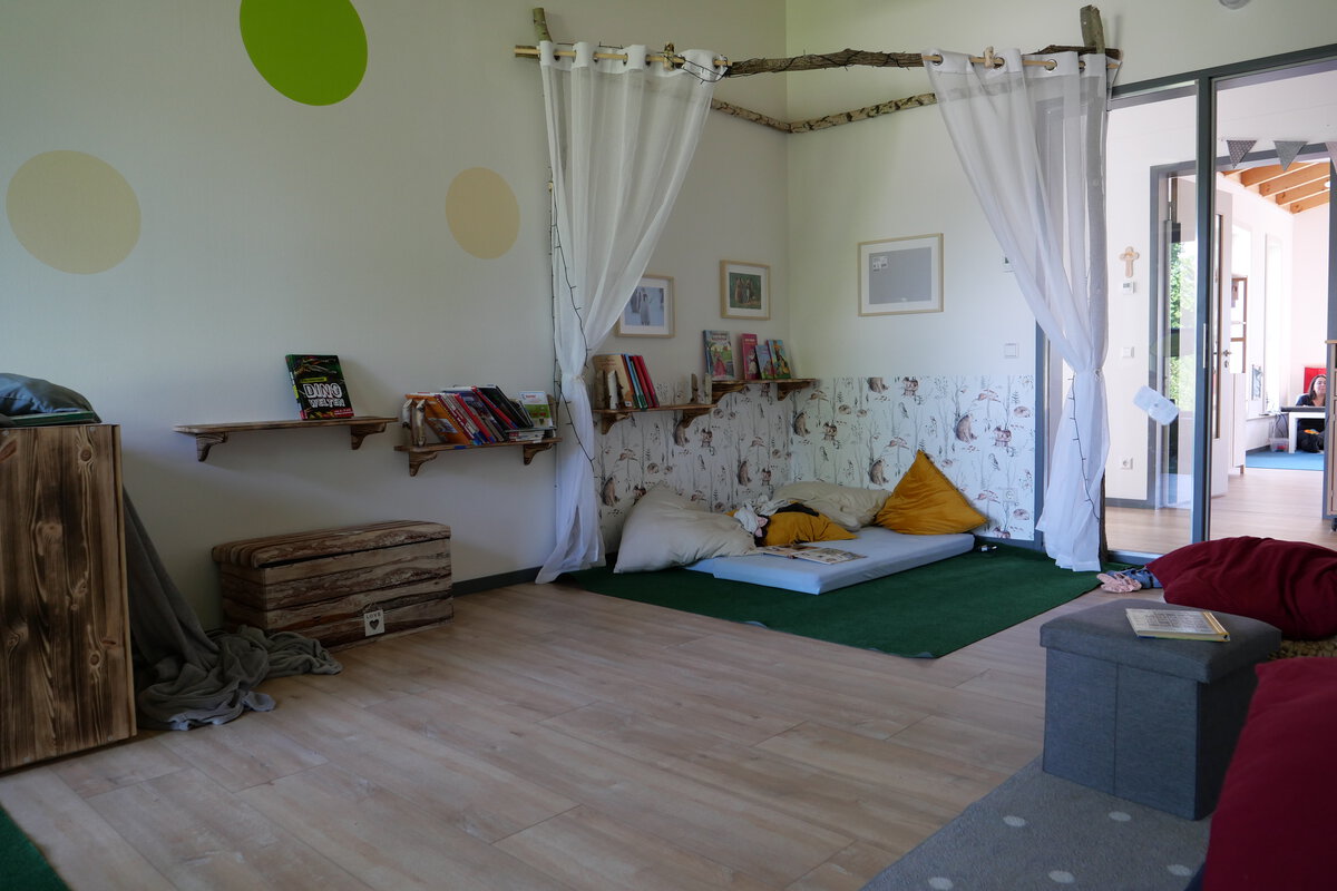 Der Evangelische Kindergarten Arche Noah verfügt über insgesamt 80 Plätze, davon 30 für Kinder unter drei Jahren. Im Haus verfügen wir über eine eigene Küche, in der den Kindern von unserer Köchin täglich eine frische Mahlzeit zubereitet wird. Außerdem stehen den Kindern neben den altersgerechten Gruppenräumen ein Turnraum sowie ein Snoezelen-Raum zur Verfügung.