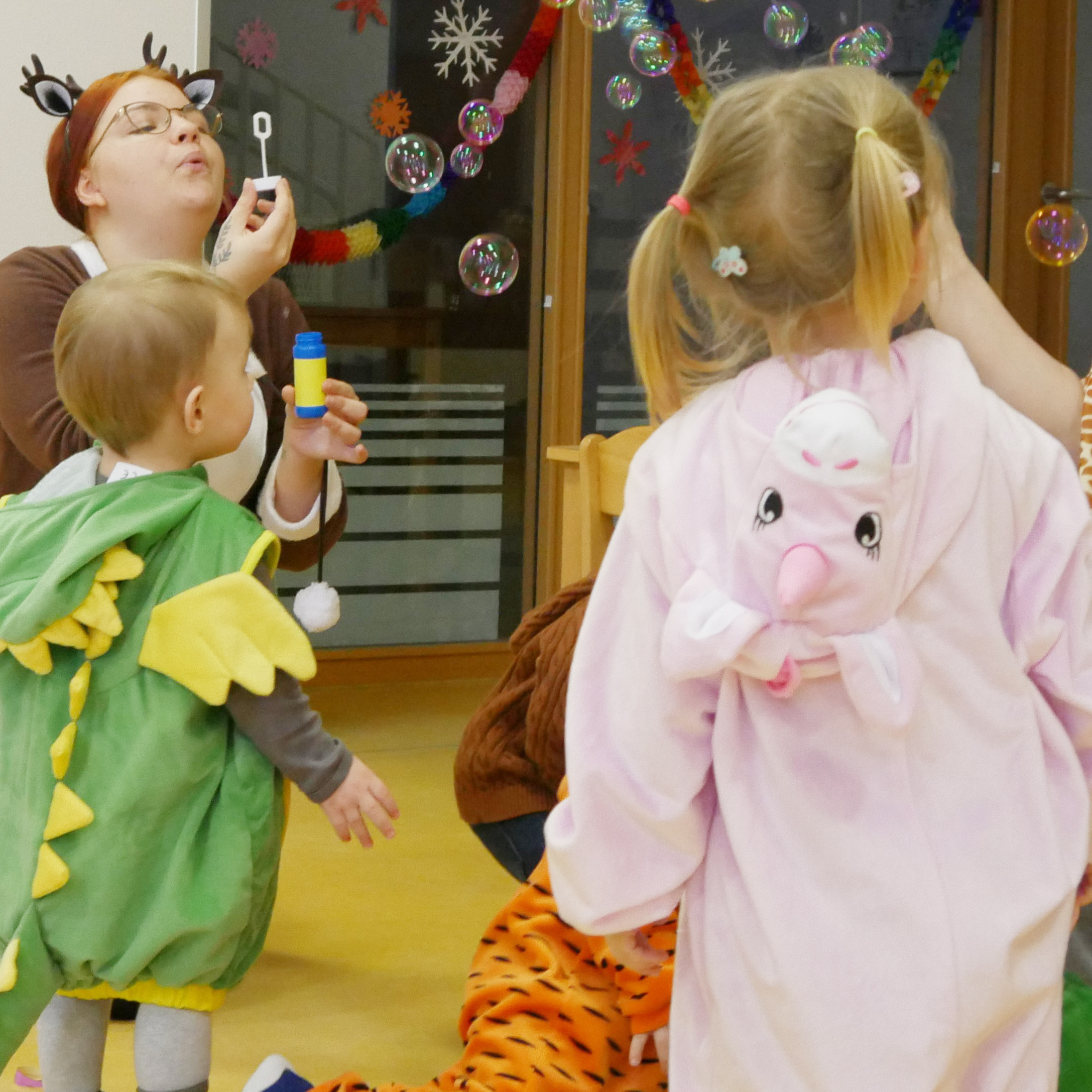 Am Rosenmontag verwandelte sich die Kindertagesstätte Haus Gottessegen in Luckau in eine lebendige Welt voller Fantasie und Spaß. Die Kinder kamen in ihren verschiedenen Kostümen - lebhafte Tiger, freundliche Dinosaurier, die durch die Gruppe stapften, Einhörner mit schimmernden Mähnen und Feen, die mit ihren Flügeln durch die Räume glitten.