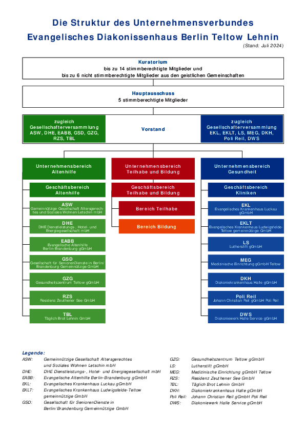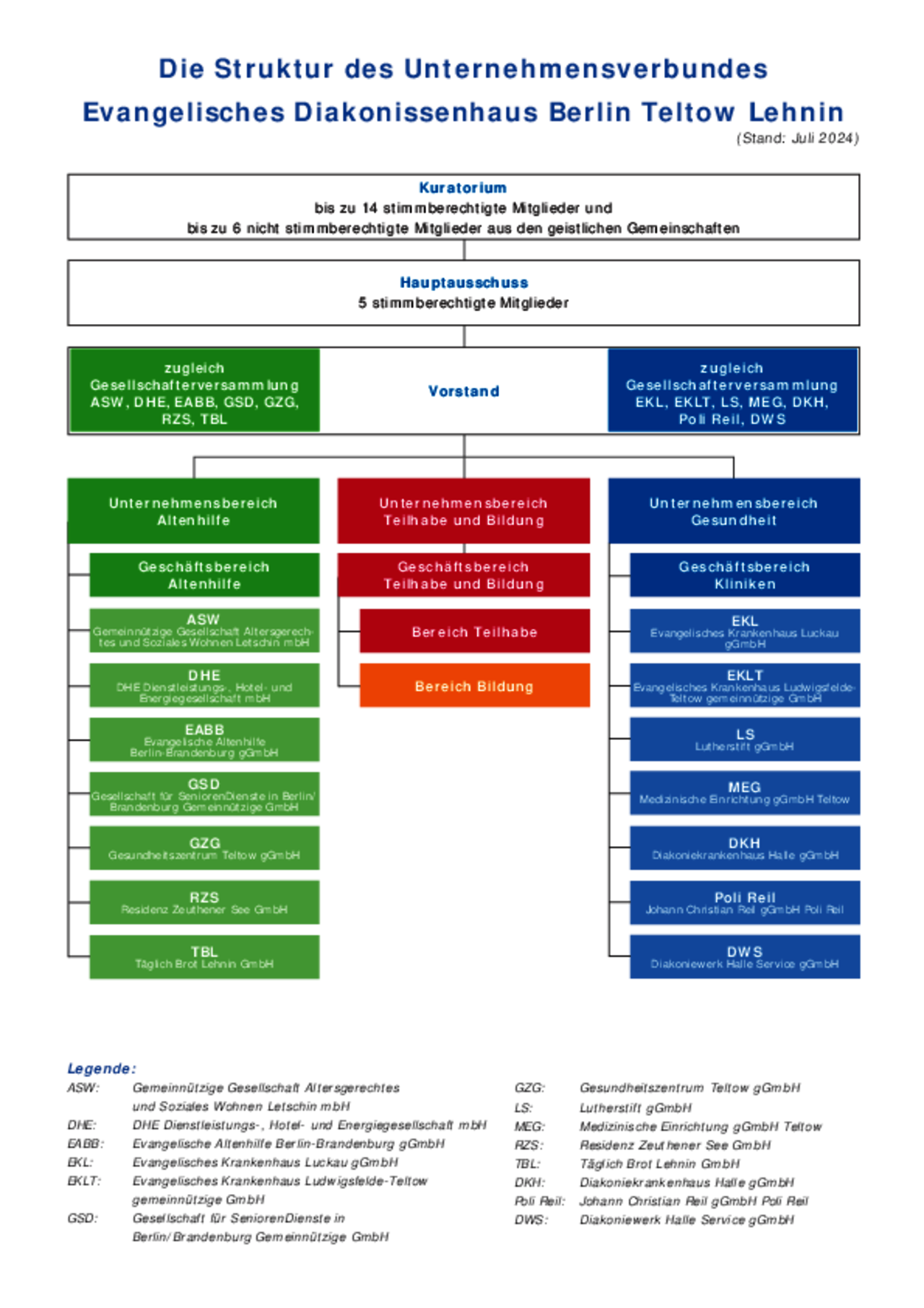 Das Evangelische Diakonissenhaus Berlin Teltow Lehnin ist eine gemeinnützige Stiftung bürgerlichen Rechts. Mit ihren Gesellschaften bildet die Stiftung einen Unternehmensverbund.
